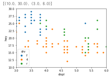 # x축 displ , y축은 hwy를 나타낸 산점도 만들기