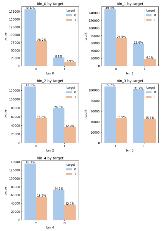 -> 이진분류에서 bin_3 / bin_4 의 경우 "T" , "Y" 를 숫자형으로 바꿔주어야함