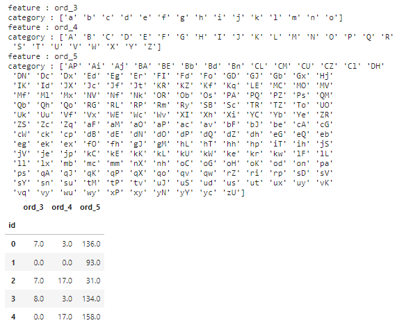 # ord_3 ~ ord_5 는 알파벳 순서이므로 sklearn 의 OrdinalEncoer를 사용함