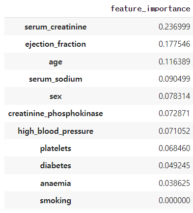 importance_df = pd.DataFrame(importance ,index=X.columns ,columns=['feature_importance']).sort_values('feature_importance', ascending=False)