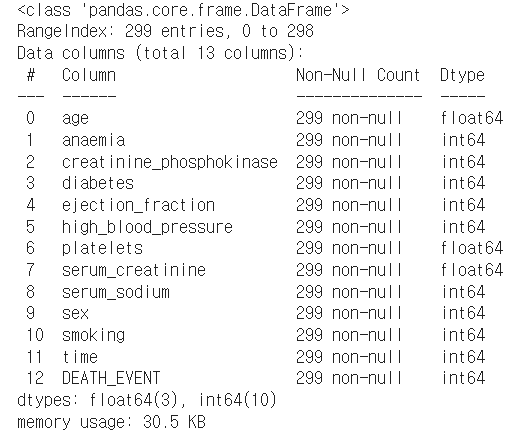 DEATH_EVENT: 사망 여부 (0: 생존, 1: 사망)