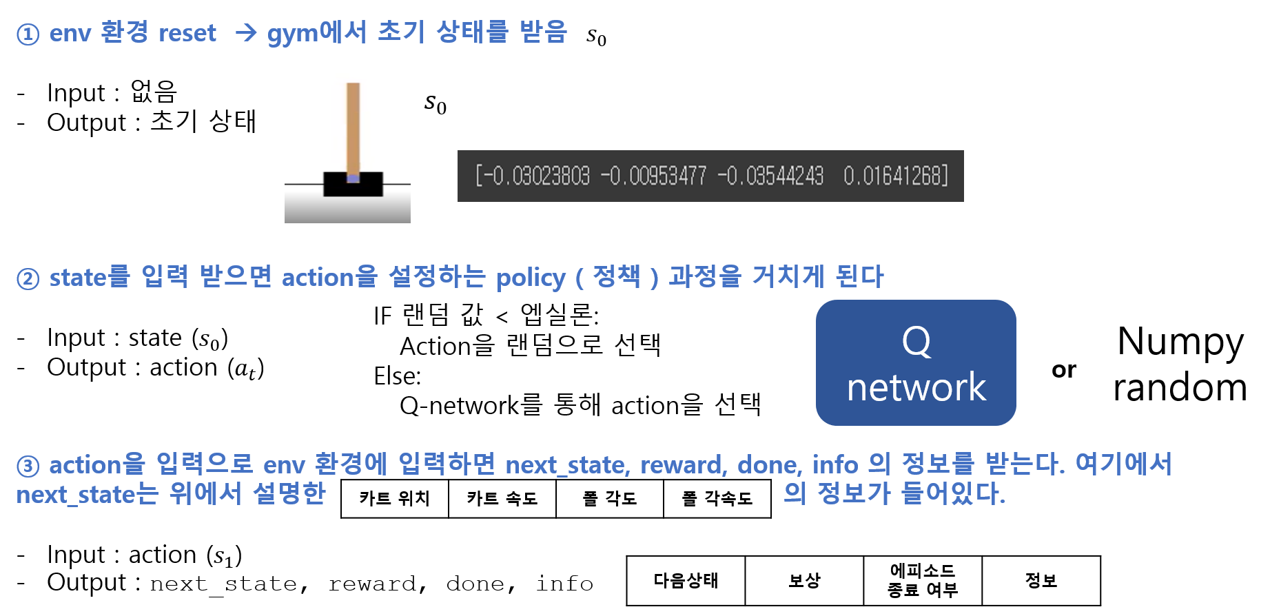 * 이번실습은 강화학습 실습으로 유명한 Carpole 을 deep q-learning으로 구현해보는 실습을 진행하였다.