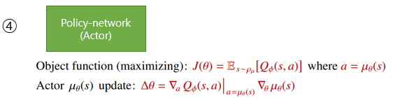 네번 쨰는 Actor Network 업데이트를 진행하는 데, 앞에서 구한 값들을 이용하여 Actor Network를 업데이트 하게 된다.