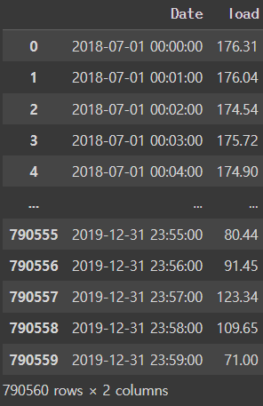 사용한 데이터는 2018/07/01 ~ 2019/12/31일 까지 1분 단위의 전력데이터이다.