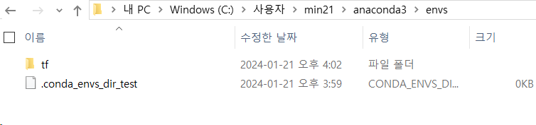 --- 가상 환경 생성 후 envs 내에 tf 라는 폴더가 생김