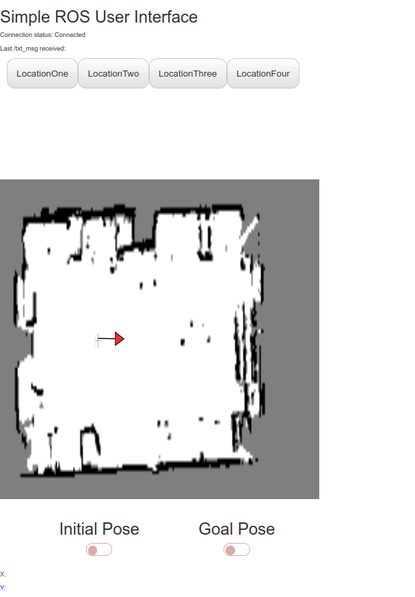 -> 위의 화면에서 Arrow는 로봇의 위치와 방향을 가르키며, map server에서 받아온 지도위에 로봇의 위치가 표시 된다. 아래의 initalPose와 GoalPose 클릭 시 각각의 위치를 설정할 수 있으며, 로봇에게 위치 정보를 전달하게 된다.