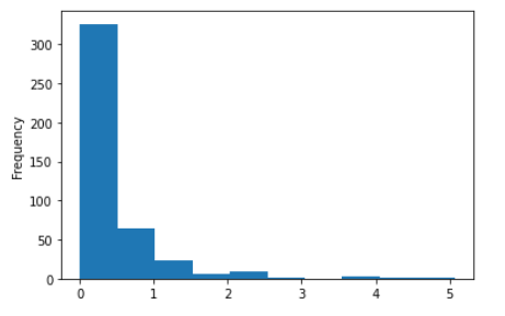 3) total, asian변수를 사용하여 '전체 인구 대비 아시아 인구 백분율 ' 파생변수를 추가하고, 히스토그램을 만들어 분포를 살펴보세요.