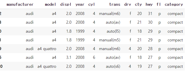 # audi / toyota query 활용하여 행추출
