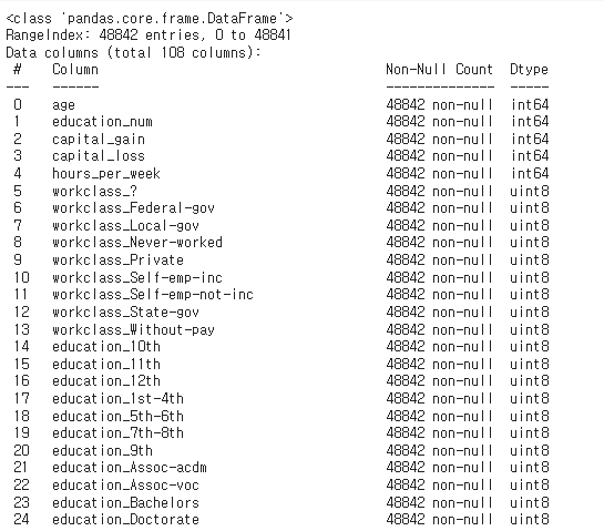 # info() 옵션은 변수가 100개 이하일때만 변수 정보가 출력되므로, max_cols=np.inf 옵션을 사용