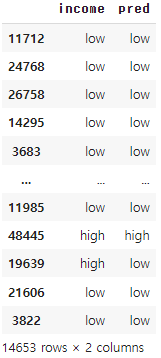 -> 소득을 high라고 예측한 사람 중에 75%가 high 이고 나머지는 low인데 high라고 말하였다.