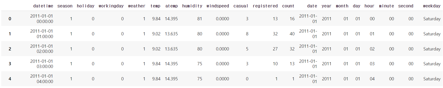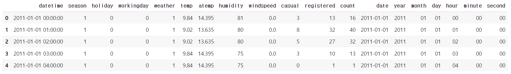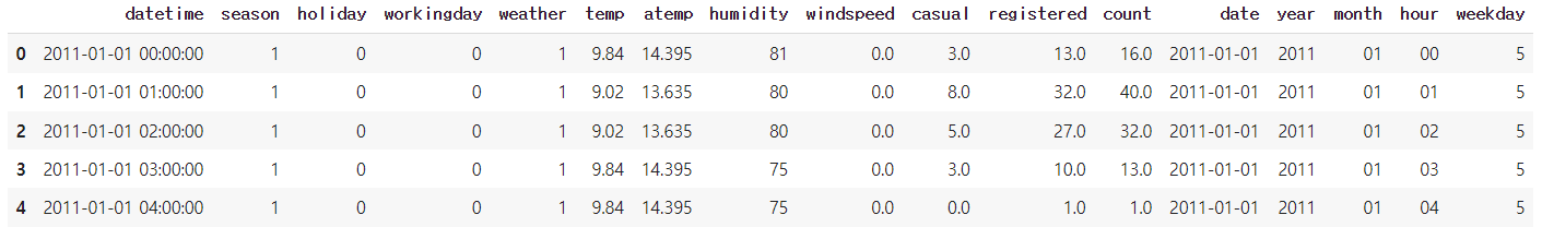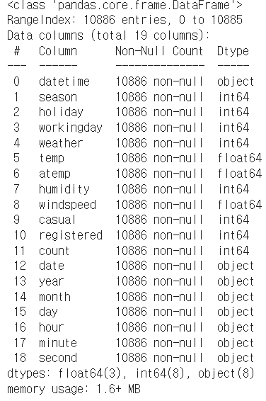2-1) datatime 변환 ( object 에서 year / month 등 정보 추출하기) -> datetime 형태로 안바꿈!