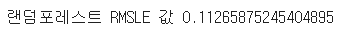 print("랜덤포레스트 RMSLE 값",rmsle(log_y_train,preds,True))