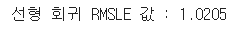 # 여기서는 임의로 만든 평가지표를 사용함. sklearn에서는 RMSLE가 없으므로 그렇게 한듯
