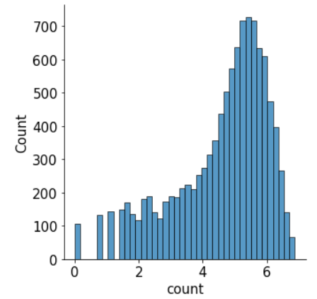 # 정규분포를 따르지 않으므로 log를 취한 target 값으로 예측함