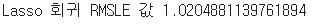 print("Lasso 회귀 RMSLE 값",rmsle(log_y_train, preds, True))