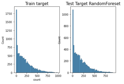 ( 기존의 train데이터의 target의 분포와 test 데이터로 예측한 target의 분포를 확인함)