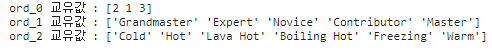 ord_1 : 캐글 등급이므로 등급으로 순서를 맞춤 --> Novice - Contributor -> Expert - > Grandmaster