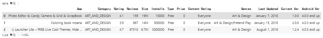 print(f"type 확인 : {data_fil['Installs'].dtype}")