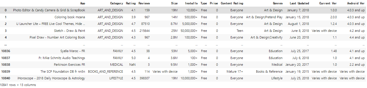 data = pd.read_csv('./googleplaystore.csv')