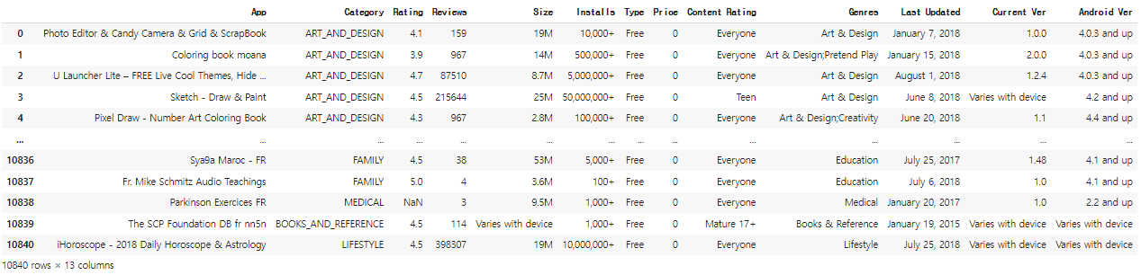 [데이터분석 실습][데이터전처리]구글플레이스토어 데이터 분석 본문