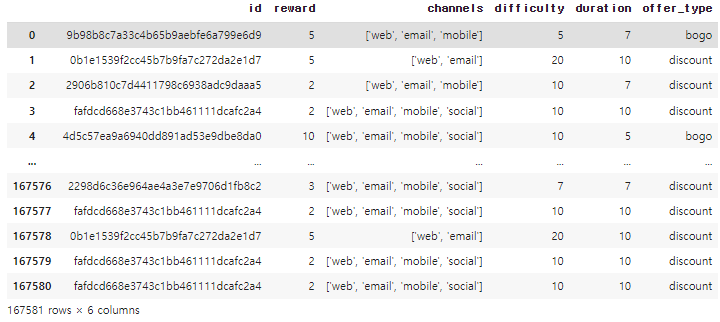 ## portpolio 내에 있는 offer_id 정보와 합치기 위해서 아래와 같이 merge를 활용함.