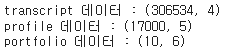 print(f"portfolio 데이터 : {portfolio.shape}")