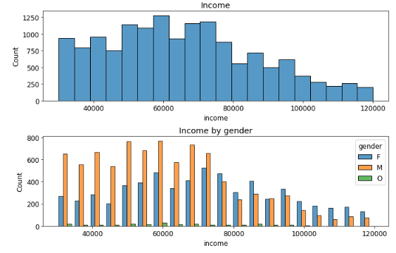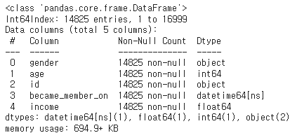 ## 결측치를 포함하는 profile내의 gender와 income의 데이터를 확인함