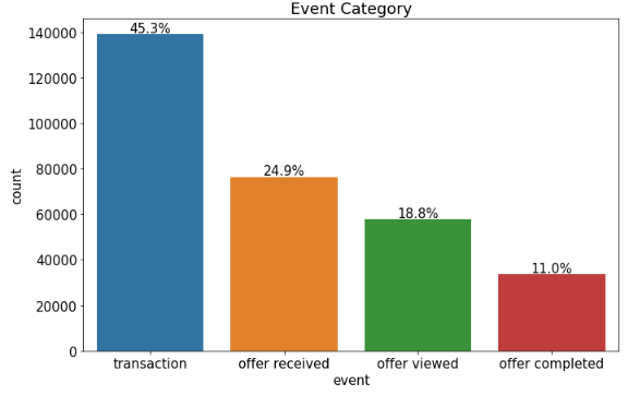 event에 대한 값은 transction(거래)이 45.3%로 매우 많은 값을 나타내며, 그다음으로 offer_receive가 24.9로 많은 양을 나타내는 것을 볼 수 있습니다.