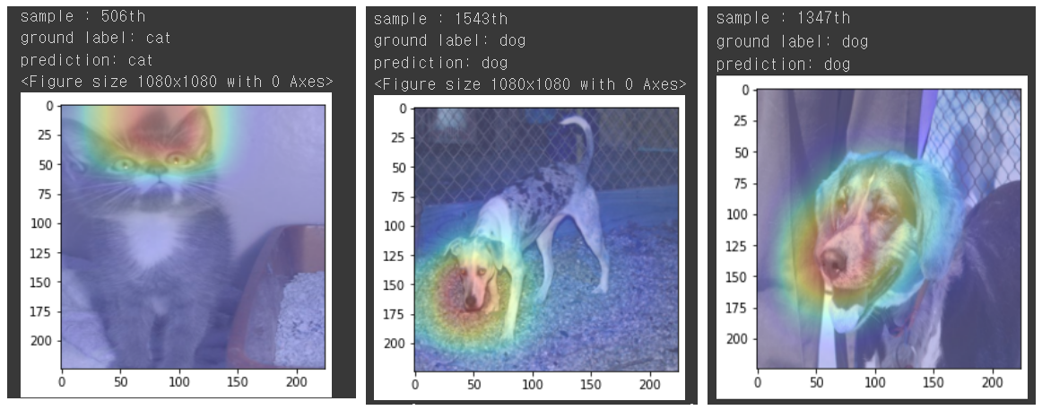 실습에서 편의상 [w1, w2 ... wn] 은 label로 예측할 때 사용되는 weights만을 사용했다. 즉 X_valid[0]은 고양이 이므로 gap_weights 의 첫번째 열에 있는 고양이 예측에 사용한 weights만을 사용하였다.