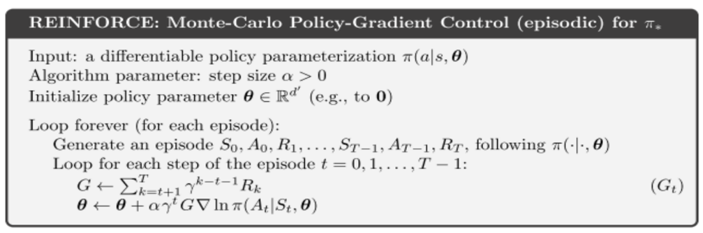 --> Reinforce 알고리즘의 pseudo-code 는 아래와 같다.