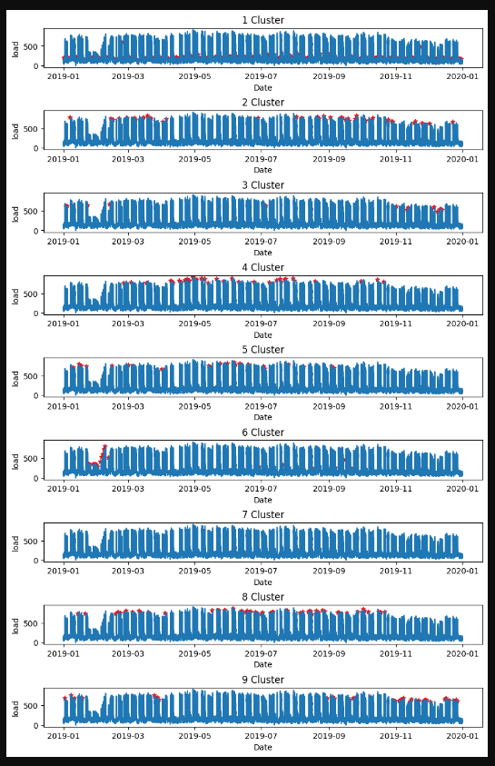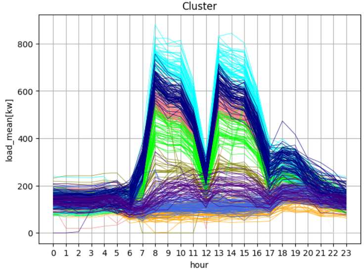 * 본 실습에서는 시간대별 일정한 패턴을 보이는 전력 데이터를 몇 개의 클러스터로 분류하는 실습이다.