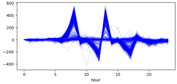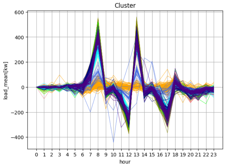 위의 데이터는 시간에 대한 값으로 클러스터를 분류한 것으로, 크기에 대해 민감하다. 그러나 패턴을 감지하려면 시간에 따른 크기보다 시간의 변화량에 대한 값으로 클러스터를 분류하는 것이 효과적인 것 같다.