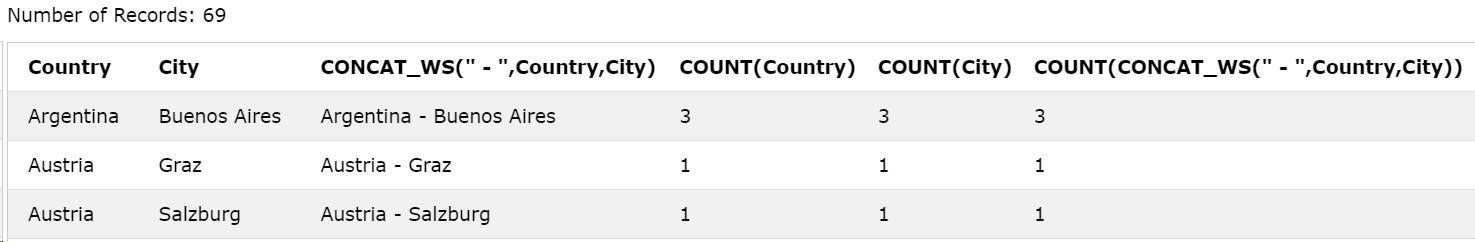 SELECT Country,City,CONCAT_WS(" - ",Country,City)